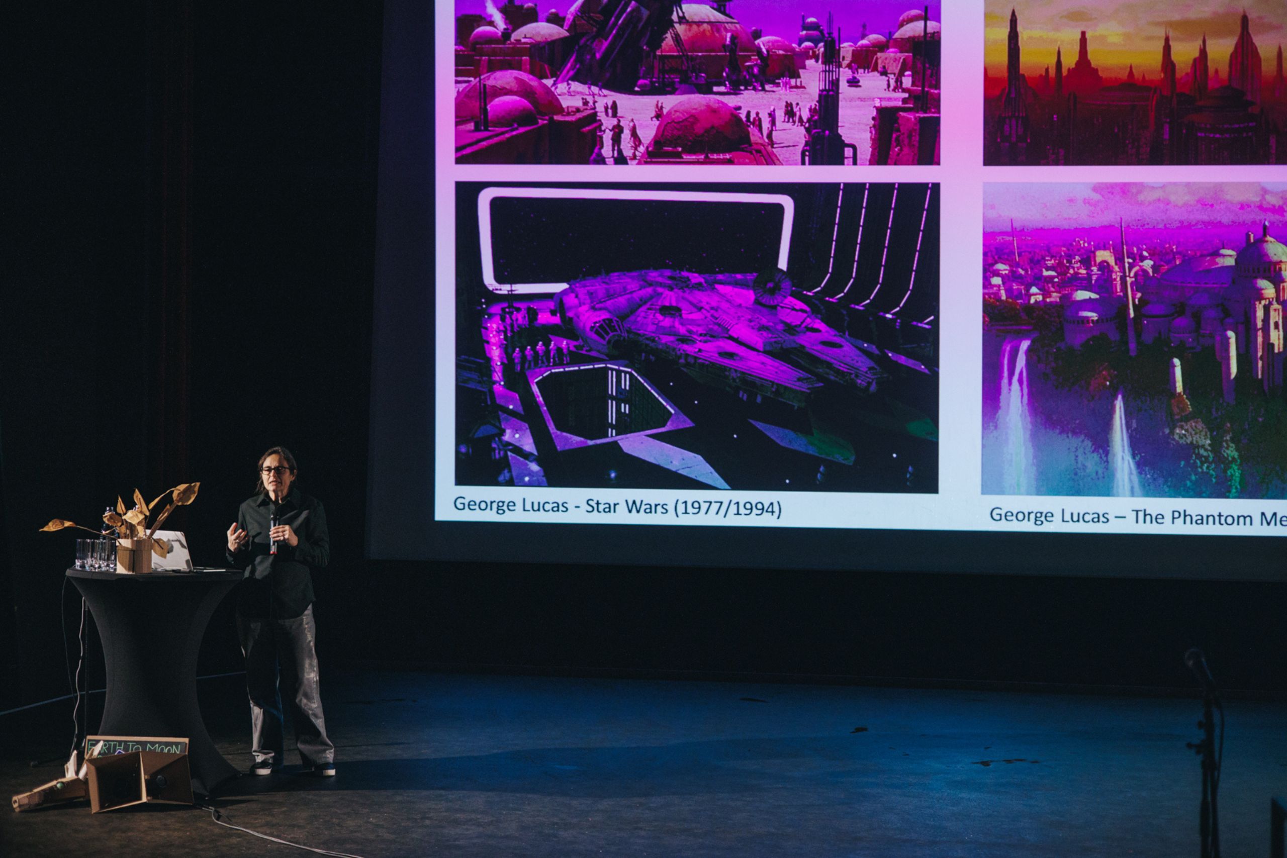 Daarna neemt Lara Schrijver, hoogleraar architectuurtheorie en overtuigd sci-fi-fan, het publiek mee in een wervelende lezing. Ze laat zien hoe sciencefiction en architectuur elkaars spiegel zijn: sci-fi vraagt “wat als?”, architectuur vraagt “hoe kunnen we?”. Samen maken ze toekomsten voorstelbaar – inclusief hun morele, sociale en ecologische consequenties.